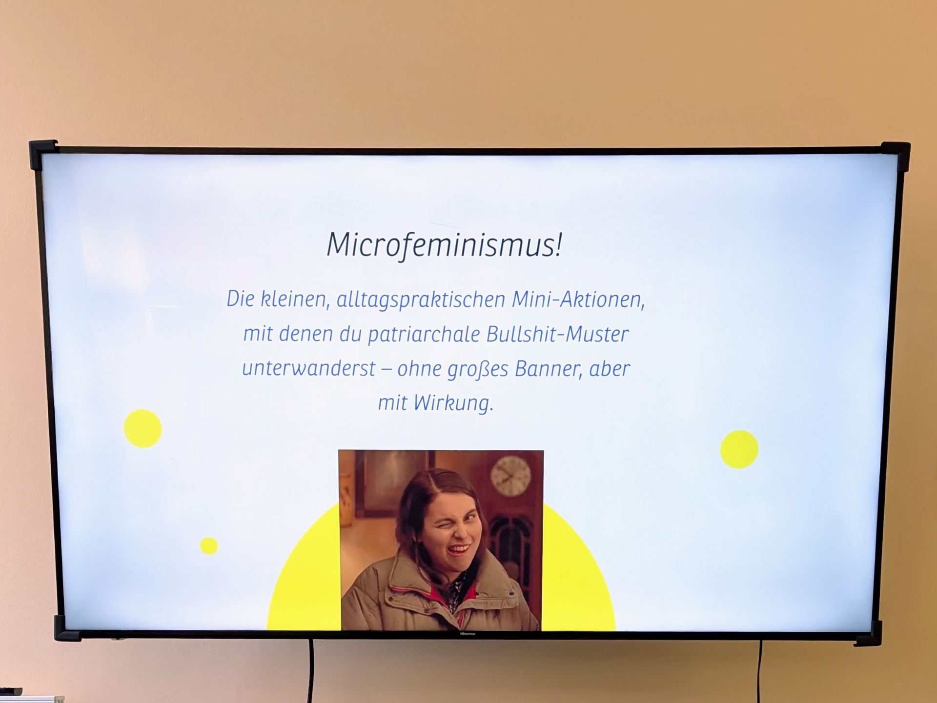 Miriam hat auch ihren persönliche Weg zum Feminismus skizziert und wichtige Begriffe, zum Beispiel Intersektionalität, vorgestellt. Danach hat sie die Gesprächsrunde moderiert, in der viele gute Ideen zusammengetragen wurden. Im Anschluss daran, wurden noch einige Punkte diskutiert.