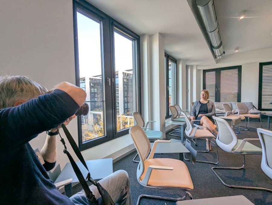 Bei der Vorbereitung des Interviews musste ich mit inneren Widerständen umgehen, aber ich wollte es wirklich durchziehen. Also habe ich es möglich gemacht: Zugesagt, abgewartet, das Interview gegeben, mich im laufenden Betrieb fotografieren lassen, Termine ermöglicht, Freigaben eingeholt und erteilt.
