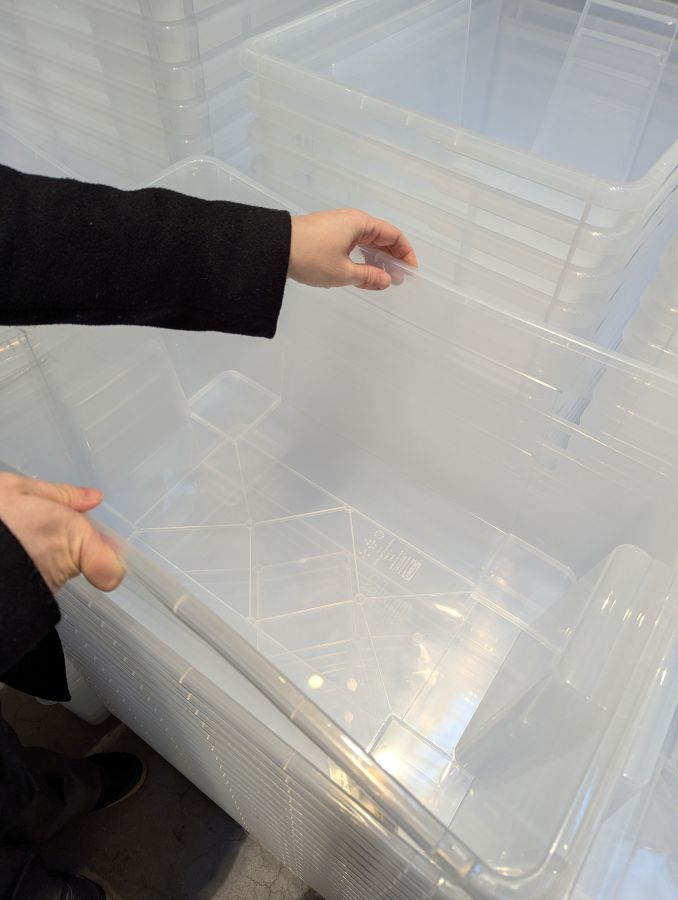 30. Wie die IKEA-Samla-Boxen richtig auseinander gefriemelt werden: An der Längsseite leicht zusammendrücken.